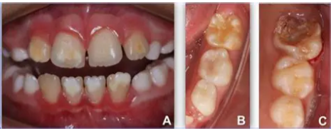 çrregullimi në përbërjen e smaltit të dhëmbëve (hipomineralizim). Kjo gjendje prek kryesisht